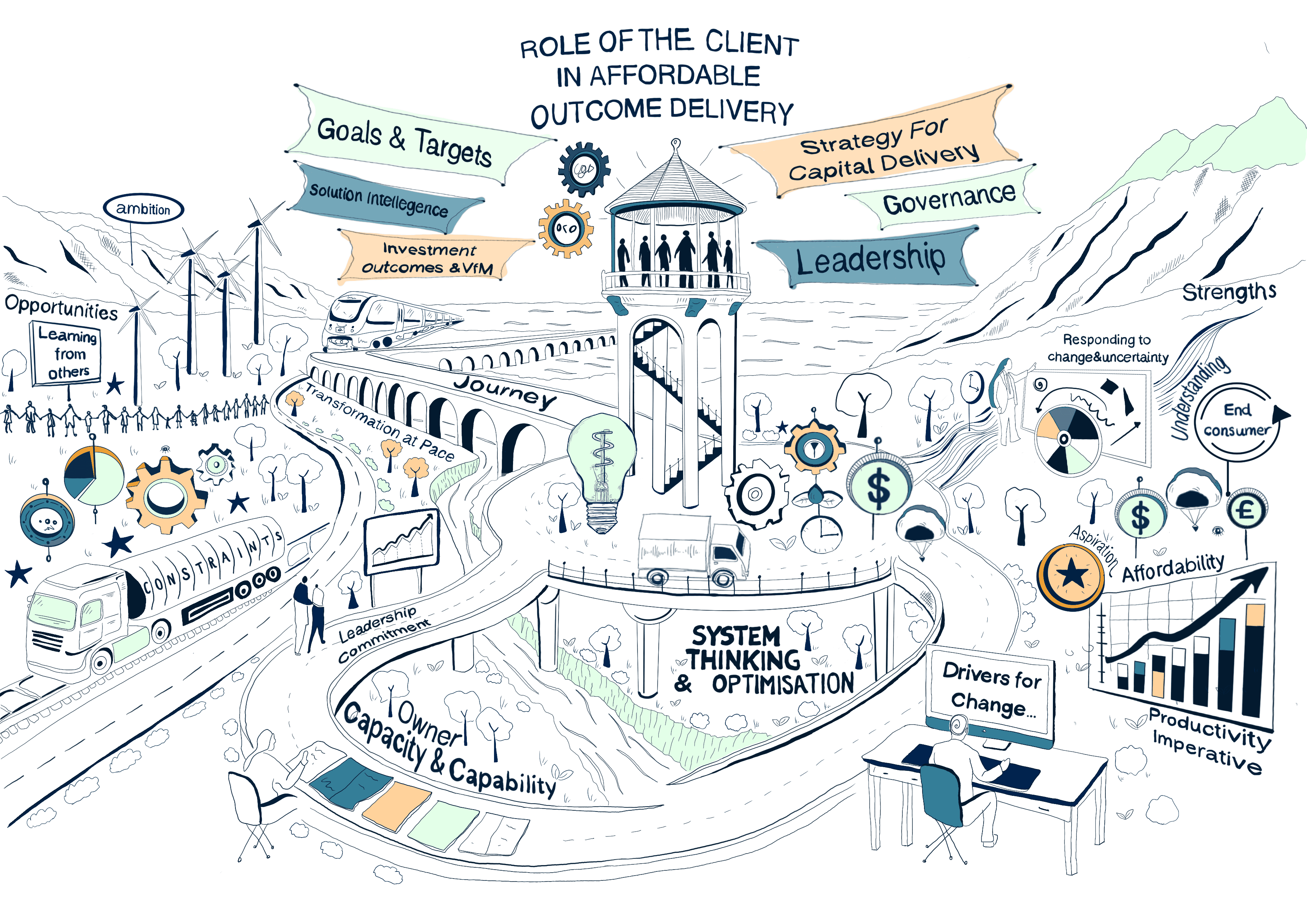 I created a series of rich picture illustrations for Allora, designed to capture and communicate the key outcomes of their recent industry events.