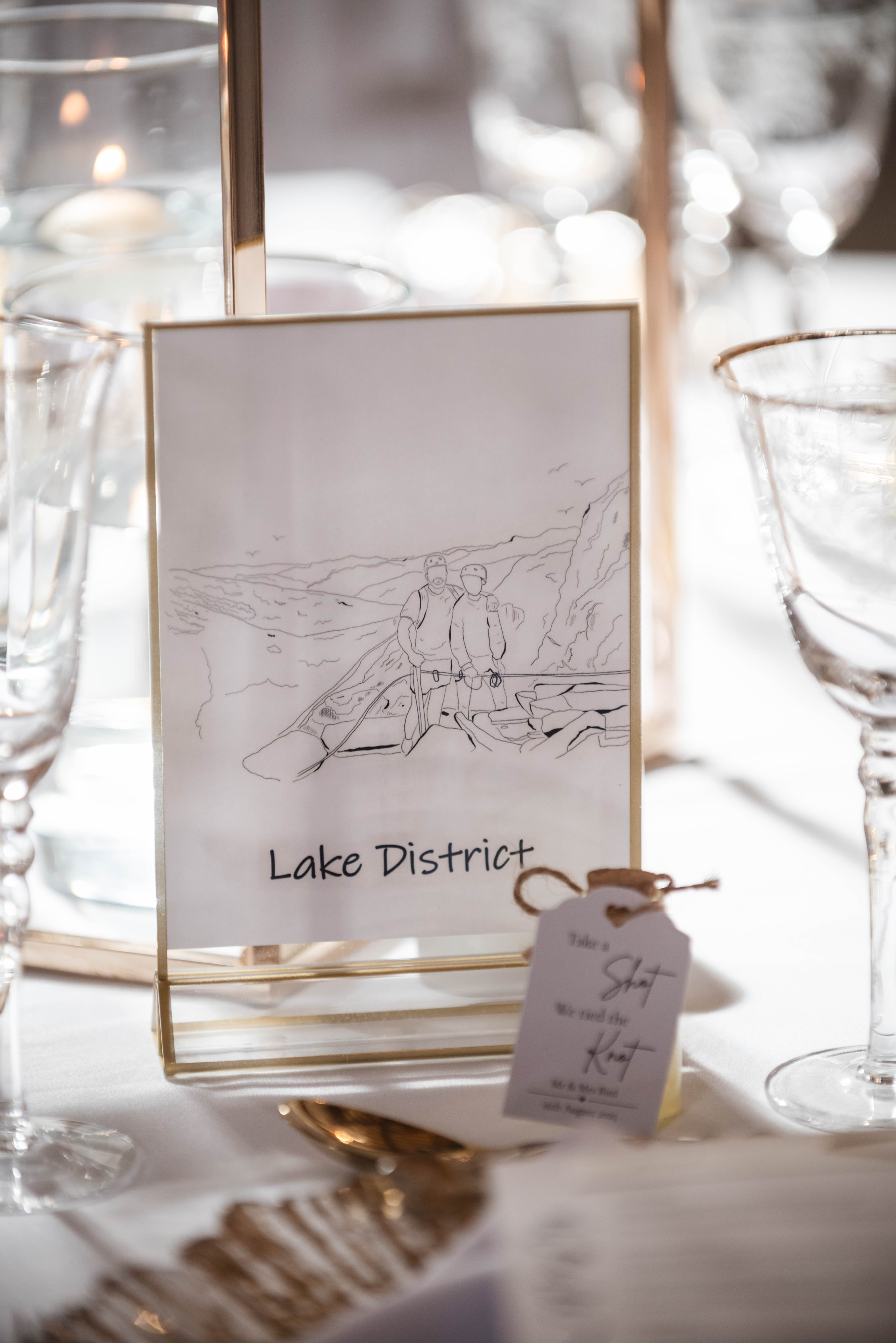 I create one-off wedding pieces like table plans, invites and illustrated details that add a personal touch to the day. I often work with simple line drawings to tell a couple’s story—whether it’s the place they first met, a favourite holiday, or little milestones from their journey together.